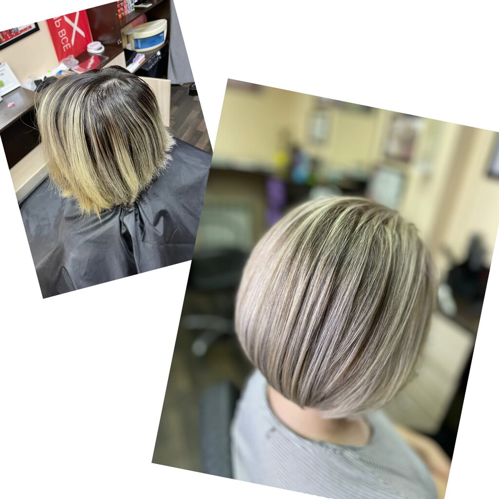 Hairdressing services:dyeing, toning, perm, coloring, for child, curls, highlights, hairdo, cutting, hair lightening
