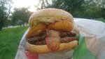 Это острая версия Гранд Чиза Фреш — со жгучим соусом вместо кетчупа! Новый бифштекс по-домашнему под острым томатным соусом и горчицей, ломтики сыра Чеддер, хрустящий Айсберг, томаты, лук и маринованные огурчики. Это точно сочно!