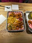 Посещение Креветочной запланировано не было, но привлекла внимание реклама. Можно сказать, зашли спонтанно. Кассир корректен, вежлив, спокоен. Ничего не навязывал, но посоветовал, к выбранным уже "креветкам от шефа", сырным спрингроллам с креветками и креветкам в панировке, на компанию взять ещё Seefood Boil. Заказ был принят и сигнал поступил через 6 мин. Удивившись скорости исполнения заказа, я подошёл к кассе, но оказалось, что спрингроллы с креветками закончились и вместо заказанных 5ти, нам предложили только 4. Кассир извинился и переоформил заказ. Конечно, не очень приятно для тех, кто спешит. Мы подождали ещё 10 минут и получили сигнал о готовности. Внешний вид блюд соответствовал фото в меню и возбуждал аппетит. Аромат приятный, ненавязчивый. Креветки, мидии, кальмары в сифудбойл приготовлены достойно. Мягкие, в достаточной панировке, не пережарены. В "креветках от шефа", возможно, многовато масла. Морепродукты не "резиновые". Вкус, у всех блюд без исключения, отменный! Понравились, особенно, сырные спрингроллы с креветками и, видимо, не только нам (учитывая, что нам достались последние). Соусы были просто необходимы к этим блюдам и, они не разочаровали. Тайский кисло-слдакий уже привычен и был очень кстати, впрочем, как и томатный. Очень понравился всем белый соус! Не разочаровали, спасибо большое! Вернёмся с удовольствием!