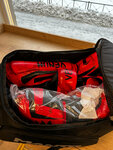 Рюкзак выполнен из плотного материала, молнии высокого качества, скользят шикарно, без запинок. Много карманчиков, есть термо карман. Если открыть дно и раскрыть его как сумку, в нижний отсек помешается еще три пары перчаток и лапы.