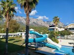 We are currently vacationing at this hotel, October 2025. This is my first experience of beach Turkey, I've only been to Istanbul several times before, and I mostly choose Asia for my beach holidays. This year, I didn't want to think, they pointed a finger at the sky in favor of a short flight, the absence of jet lag. The hotel definitely does not pull 5 stars, if you are pampered by rixos and other cool networkers, you will be very "fu" here. The room stock is a bit tired, but the cleaning is very ok, the bed linen and towels are of normal quality. Yes, there is no territory as such, if you live in a beach building — you will immediately have access to the beach, a bar, snacks, ice cream. We live in a building across the street. The two parts of the hotel are connected by an underground passage. In the part that is closer to the mountains there are water slides and a small pool, in the evening I go there to sunbathe and watch the sun fall behind the mountains. The water in both pools is invigorating, but refreshing after the sun is acceptable. The food is OK, there is a variety, but we've already gotten used to it in two weeks, and in the evening we go to dinner somewhere in the center of Kemer. We only drink beer at the bar, the ice cream is delicious, in the snack bar you can eat a burger, French fries and cooked meat a couple of times in the pit. The beach line is narrow, but as I understand it, this is the case throughout Kemer. The sea is clean, they weren't interested in animation, but the animation guys are trying and constantly conducting games, dancing, and gymnastics. The hotel completely covered our expectations from the rest: the sea, the sun, the fresh air. Next time I'll take a more thoughtful approach to the choice, but now at least I understand what a vacation in Turkey is))