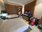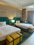 Greetings to all! We had a rest from July 1 to July 6, 2024. All Inclusive. About the hotel: I really liked the interior and exterior, the Guest Room renovation is relatively fresh, but in some places the furniture is already torn. The exterior is made almost in the Arabic style in beige shades, it looks nice :) Along the beach: an excellent beach with a gentle entrance to the sea; there are no waves due to the wavebreaker; the sand does not heat up due to the fact that it consists of shells; relatively quiet and free in cabins 4.2. and 4.3.; there is no beach bar in the area of these cabins (only near the pool); the sea is hot in July :) In terms of service: it is necessary to train the staff to speak without an accent, in some moments it is not clear at all what they are saying; reception - no questions, everything is at the highest level; you come to the restaurant - every time you call the room number (why? I already have a bracelet of a different color); you ask the waiter to remove it from the table - he will tell you no, sit over there; the dumbest thing is that you come to the bar, they start doing something with a displeased face, they say - go sit down and ask the waiter. my wife's birthday was on July 1, the tour operator indicated this, I said it 2 times at the reception, as a result, I wrote to the tour operator again on July 3, she wrote to the hotel and only then did they bring us a "present" in the form of a cake, when the rest were beautifully and loudly congratulated in the restaurant, they did not finalize (my wife was offended.) Meals: according to the All Inclusive program, you can: eat in the main restaurant, drink something in bars and that's it. If you came up at 16:03 for ice cream, sorry to pay (although here it is, lying with me). A la carte, of course, is paid, but for some reason it's strange for everything except the restaurant to be paid. The difference between AI and UAI is alcohol 24/7 (but where it is given after the bars close), you can order room service, a la carte is always available and 1 more item. In the restaurant, you should try to find something not spicy, the breakfast is always top-notch. For children: we went with my daughter, she was 2.9; she didn't like the children's room - her daughter was attracted only by the pool of balls; there were dead ps4 gamepads, there was a PS5 - Sorry, it's paid. There was no animation for the whole time. The only advantage is a mini water park, 4 slides (1 does not work). In general, it's not enough for children, if you want to relax with a child, choose another hotel. Around the hotel: The hotel is located on Ostroye Al Marjan, a relatively recent island, and apart from a couple of hotels you won't find anything around. It takes about 1.5 hours by bus to get there from the airport.