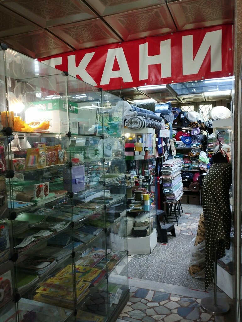 На небольшой площади -богатый выбор плательных,мебельных и х/б тканей,швейной фурнитуры.Доброжелательное обслуживание.