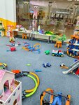 Это худшая детская комната, в которой мы были. Заплатили 1280 ₽ за двоих детей за 30 минут — и получили полный бардак и ощущение запущенности. В помещении был всего один ребёнок, но при этом абсолютно все игрушки разбросаны: куклы раздетые валяются под ногами, одежда от них отдельно, играть просто неприятно. Состояние игрушек — отдельный провал. Треки для машин сломаны, бизиборд в ужасном состоянии с отсутствующими деталями, многие игрушки не работают (нет батареек или они неисправны). Складывается ощущение, что за этим местом вообще не следят. Персонал тоже не на уровне. На простой вопрос о наличии комнаты «мама и малыш» сотрудники уверенно ответили, что её нет, и предложили идти в туалет для инвалидов. Позже, когда вопрос с трудом, но был решен, я обнаружила эту комнату в ТЦ — она есть, и там даже два пеленальных столика. То есть сотрудники либо некомпетентны, либо просто не хотят помогать. За такие деньги ожидаешь хотя бы порядок и минимальный сервис. Здесь — ни того, ни другого. Есть с чем сравнить: в Trendi Toys (ТЦ «Лето») при большом потоке людей всё чисто, игрушки в порядке, сотрудники внимательные. Здесь же — полное несоответствие цене. Не рекомендую.