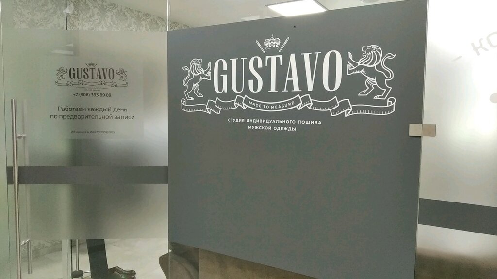 Пожалуй, единственное место в Ульяновске где можно заказать мужскую одежду и обувь представительского класса самого высокого качества. Костюмы (блейзеры, пальто и т.д.) шьются по технологии made-to-measure: Портной Александр снимает с вас мерки, вы выбираете фасон и ткани, далее заказ отправляется на фабрику в Гонконг, где изготавливается, и присылается в Густаво. После примерки и финальной подгонки вы получаете конечный продукт. Недешево. Небыстро. Но оно того стоит.