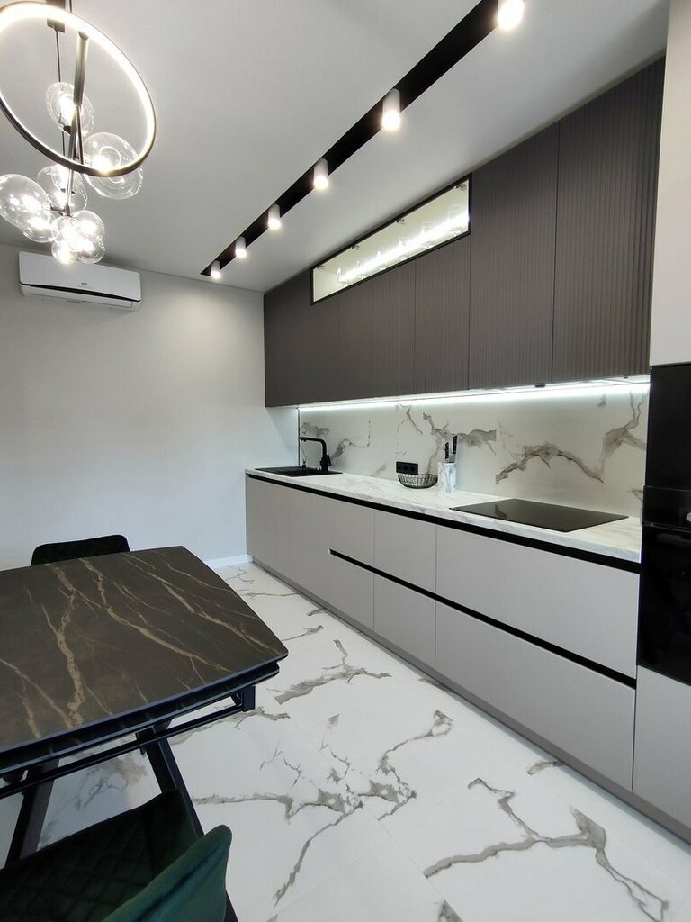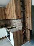 Заказывали кухню и технику в небольшую студию.Получилась очень вместительная.На технику (духовка,варочная, вытяжка и раковина со смесителем) сделали большую скидку.Анна полностью переделала изначальный проект и подогнала под наш бюджет.Обязательно вернёмся за шкафами