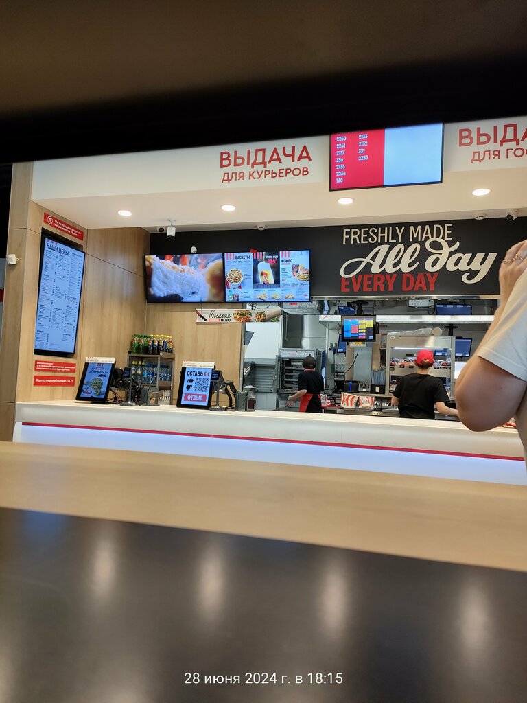 Была вот только сейчас. Забежала быстро перекусить, в результате ждала заказ больше сорока минут. Одна девочка стоит за кассой принимает заказы и она же их формирует. Работает быстро, но физически ей не разорваться. Неприятно, что формируется заказ грязными от денег руками, та же салфетка кладётся. Вкусно, но очень-очень долго. Пожалуй, обойду это место в следующий раз.