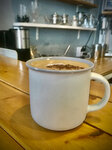 Отличный дизайн и атмосфера, много света, окна с замечательной расстекловкой) Позиционируют себя как specialty, но есть только воронка, без возможности выбрать зерно. Отсутствие переборки/двери с остальным пространством помещения может быть чревато, ибо когда то пространство начинают мыть с хлоркой...((( UPD: Затем были еще пару раз. Уже можно было выбрать несколько сортов от Сварщицы К) Ну и хлоркой не тянуло))