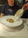 A very beautiful place, with a focus on local products. We took two tasting sets. The lemon dessert is absolutely gorgeous, the bone marrow is excellent, but I would replace the white toast with a dark (strongly malty) one. Saved with a beautiful serving, tastes a little like Leningrad mushroom soup with sour cream - delicious. The taste of Childhood Salad is unexpected, for people with childhood in the Russian Federation, but it is also good. The pastas were both delicious, but nothing unusual. I would not re-take green gazpacho (without cheese at all, but it just tastes poor) and trout mousse (looks like a fish cutlet without texture, there are bones). We will definitely come again, the menu is updated regularly. The wine was recommended to us very well, the choice in the wine room is decent.