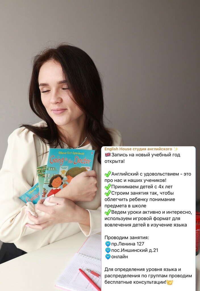 Хочу выразить благодарность 🙏🏼 Дочка в восторге с первого занятия, и с нетерпением ждёт следующие) Обратились, т.к в школе все очень плохо, и совершенно ничего не понятно! Алфавит еще не прошли - но читать уже задали… В English house уроки проходят интересно, домашние занятие с аудио-видео! Наконец-то ребенок начал понимать что такое Английский язык, теперь на школьные занятия даже идти не хочет 🫣