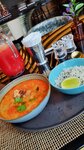 Tom Yam with shrimp with tails and mussels in shells is strong. How am I supposed to eat this aesthetically, without getting my hands dirty and everything around me, trying to take out the mussels and cut off the tails of the shrimp? There are no wet wipes on the table. In general, it is quite tasty and the service is acceptable, but it is not worth the money.