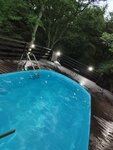 Недавно в этом комплексе снимали большую беседку с бассейном. Расположение удачное:лес, птицы, одним словом природа. Сама беседка укомплектована всем необходимым, но было грязно в самой беседке. Посуда грязная , перемывали. Полы , да и сама территория прилегающая к беседке грязная. Бассейн с мутной водой, дно в бассейне очень черное (дети отметили при нырянии в очках), вода сильно отдавала химией , как будто только ее бросили перед наших приездом. Такое ощущение, что просто к нашему приезду не успели подготовиться. Детская комната очень грязная: пыль, мусор.