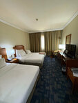 We stayed at the hotel in November 2025.three adults, I liked the hotel, special thanks to the staff - smiling, responsive, caring people)) Our room was on the 1st floor, 3 beds (two single beds and one single bed), there is a TV with the Russian channel TNT in the room, there was no balcony, the Windows faced the road and the Carlton hotel, the audibility was good, sometimes it seemed that the window was open, but they did not open)) but the noise didn't bother me at night. The room also had a safe, a kettle with coffee/tea/cream/sugar, bottles of water for each person, paper napkins, refrigerator, body lotions, soap, shampoo, hair dryer. They immediately asked for slippers from the cleaning service- they brought them immediately, plus they gave dental kits (brush + paste). The room was simple, but clean, and they were used to living in similar rooms in Asia, so it didn't bother them. Sockets with different inputs, no adapters needed. Water and soap were replenished every day. Towels are issued by the pool using cards (1 towel per 1 vacationer), they can be taken to the beach, which is great. The meals were breakfast + dinner, but dinner can be changed to lunch - every morning at breakfast, the staff clarifies whether you will have lunch or dinner today. The food was delicious, we liked almost everything, we ate our fill) For breakfast there are always cereals, porridge, eggs, sausages, delicious pastries (especially croissants), a variety of drinks-tea / coffee / juices / water, for dinner there is always fish, meat and chicken (in several types-with sauces and a type of barbecue), greens, salads, desserts (especially liked mousse, we ate it with fruit), tea is the only drink for dinner, you can buy soda for an additional fee. The beach is 5 minutes away, the beach is good, you can rent an umbrella for 30 dirhams and a sunbed for 10. In general, we chose between lavender and golden, the second room is better, but far from the sea, as a result, the proximity to the sea won and on vacation we already realized that we had chosen the right one, went to the sea when we wanted, waited for transfers and be ready for a certain time - this is not about us)) and transfers are only carried to the sea in the morning, and we often went in the evening) We ate in two places - at the Shabab Al Khan Cafeteria and at the Mahrousa Restaurant and Sweets restaurant near the aquarium, I recommend both places, very tasty! In the first one, the portions are smaller, but the price tag is lower, the aquarium has a lot of locals eating, the price tag is higher, but the portions are huge and the overall atmosphere is more pleasant. For clothes, go to Brands For Less, a chain of stores like our Last Name, branded items for a great price)
