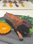 A good restaurant, the food is very tasty, the serving is beautiful) Ordered: - Smoked tongue of the Altai maral with babaganush and barley milk. - Terrine of baked vegetables with warm omyrtka fillet. - Young lamb loin with garden pea puree and Zhusan sauce. - Cherry sorbet with lime and coconut. The restaurant is 5 stars, but there are wishes: - do not take out hot dishes at the same time as cold ones, they also cool down. - stains on the tablecloth are, of course, not the level…