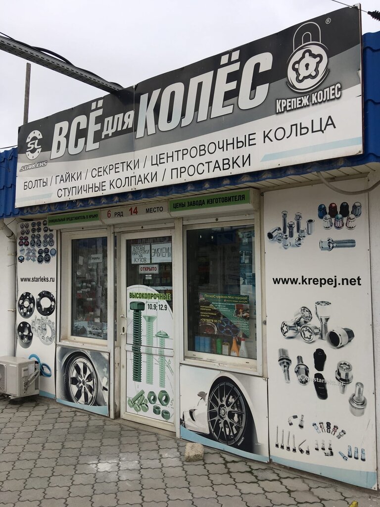 Магазин где есть все для колёс понравился продавец оказал помощь в подборе креплений колесных дисков, купил и поставил на шиномонтаже. Единственный минус это заставлена автомобилями вся свободная площадь рынка не возможно проехать.