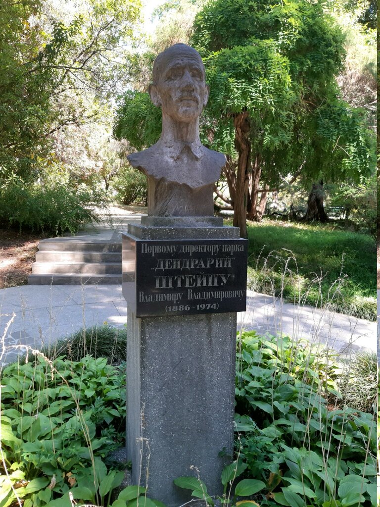 Памятник первому руководителю одного из самых больших 💯🌞 и красивейших 🌷🌹💐 парков-заповедников России 🇷🇺 встречает посетителей практически у самого входа если свернуть налево 👀. Дендрарий 🌳🌴🌲состоит из верхней (горной) и нижней (водоемной) частей. В нижней вас порадуют живописные виды пейзажных водоёмов 🏞️🏝️с их обитателями🦆🐢🐸 - есть даже черные лебеди. В верхней, гористой ⛰️🏔️ части - великолепные аллеи тысячилетних деревьев 🌵 🌴 🌳, изящные скульптурные композиции, павлины🦃 и много, много интересного!!! В парке, который за один день не обойти (берите больше воды 🥛🍼и припасов🍔🌭🧀), вас порадуют своим великолепием многочисленные специально высаженные цветы🌷🌻🌹🌺💐, величавые деревья 🌲🌴🌳уникальной расцветки, многочисленные уникальные художественные скульптурные композиции🎠🗼🗽🗿⚓ - это точно стоит увидеть и заснять📽️🎞️📸!!! Чистейший❄️ наполненный кислородом горный воздух 🗻⛰️ дополняет картину. Вообще, это прекраснейшее место для прогулок☀️🌞🌤️, отдыха, размышлений 📗📚🍷. Тишина и впечатляющие пейзажи 🏜️🏝️🌅 гармонично дополняют друг друга. Обязательно посетите парк и это оригинальное памятное место 🗼🗿🗽, берите детей! Положительные эмоции и уникальные фотографии 📷🎞️📸 гарантируются 💓💗💖!!!