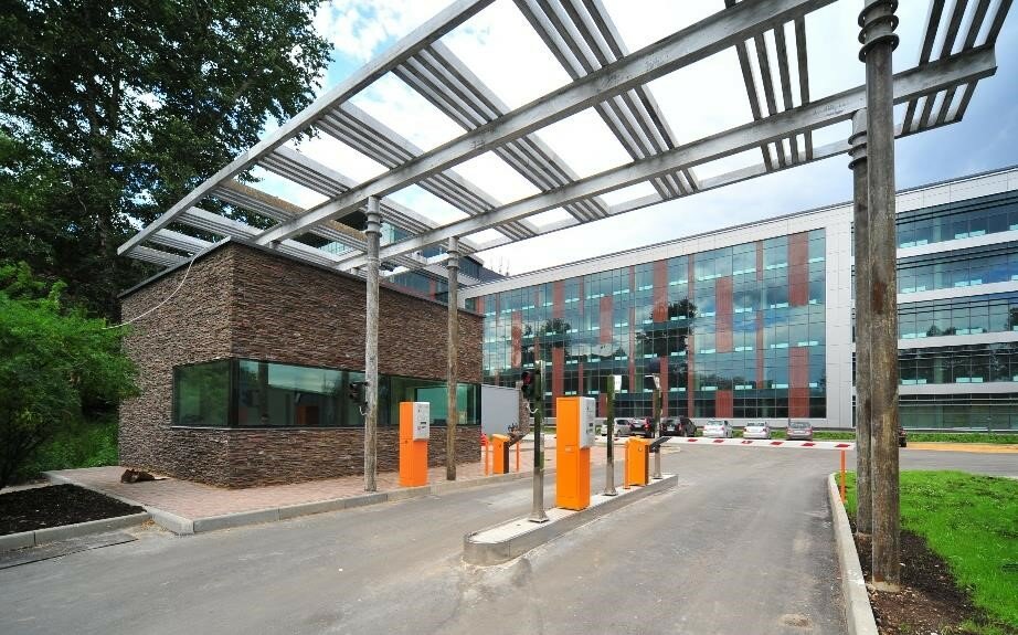 Большое офисное здание.Хорошая парковка.Просторный холл , несколько кафе,где можно вкусно и недорого перекусить.Рядом станция метро Минская