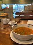 Понравилось то, что внутри просторно, спокойно, продумано. Случайно заметила, что есть даже второй этаж, но туда не поднималась. Достаточно большое меню с бизнес ланчами. Есть бесплатный wi fi: удалось не только поесть, но и продуктивно поработать. Вежливый и внимательный персонал. Спасибо!