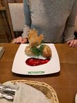 Девушка на входе честно боролась на наше внимание и расположение и мы в знак уважения к её труду решили пообедать здесь, хотя выбор огромный на фудкорте. И не пожалели. Очень щедро и вкусно нас накормили, было даже угощение в качестве приветствия. Порции солидные, десерт не осилила даже половину) спасибо большое за такой высокий сервис.