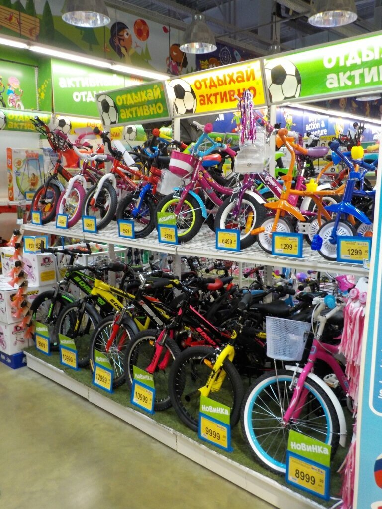Отличный детский магазин. Для детей есть практически все от игрушек, разных мелочей до одежды и обуви. Большой выбор самокатов, велосипедов, роликовых коньков на разные размеры. Продавцы всегда вежливо помогают выбрать, подобрать товар.