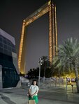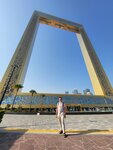 The famous Dubai Frame. Divides, Old and New city. It is a 20-minute walk away. From the metro station. And 20 steps from a public transport stop. The view from the height of the city is beautiful. The entrance fee is 65 local rubles, per adult. In the evenings, they turn on the illumination of the building. Which can be viewed. With a nearby park. The entrance to the park costs 6 local rubles per person. A good place. For visiting. Recommend.