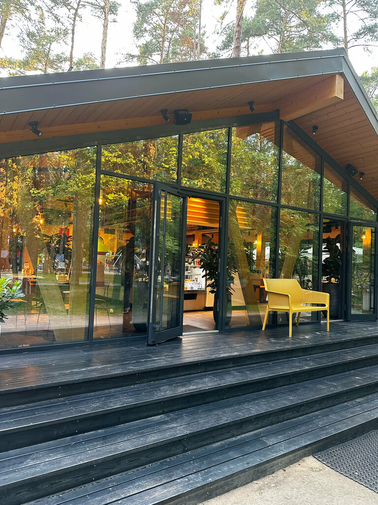 Сначала о плюсах: 1. хорошо, что вообще в этом месте есть где согреться и хоть что-то выпить и съесть. 2. Бариста - замечательный и участливый. Глинтвейн прекрасен. 3. Вкусная, правда хорошая, пицца. 4. Вкусный и действительно большой Большой зелёный салат. Минусы: 1. Очень на троечку официанты: пять вилок на шестерых и эту вилку пришлось просить дважды. Принесли когда уже было съедено. 2. Опять компетенция официантов: Я: «Подскажите, в пасте с морепродуктами, есть сливки?» Официант: «Неееет» Я: «Точно нет? Только масло, томат и морепродукты?» Официант: «Да, только томат и морепродукты» Я: тогда беру Паста с морепродуктами на СЛИВОЧНОМ соусе. Кстати, не выразительный и вкус и для своей цены довольно скучно: недосоленные феттучини щедро залитые сливочно-томатным соусом с акцентами острого перца. Четыре кусочка тушёной форели величиной с миндальный орех и одна (!) креветка. Не рекомендую. 3. Опять к официантам: Муж: у вас плов хороший? какой стоит взять? Официант: Очень вкусный. Берите с курицей. Плов сухой и жёсткий. Даже половину не съел (голодный мужчина, только что прошедший три сложные тропы верёвочного парка). Не берите. 4. Холодный день. Мокрые гости с тремя мокрыми детками сели за свободный стол. На веранде никого. Нам предложили пледы (спасибо). Но тут же прямо возле нас официантка открыла дверь, чтобы забрать у шашлычника кукурузу и что-то ещё. И так и оставила её открытой. Но мы перемёрзли и мокрые… дети… как-то почеловечнее бы. Можно дверку за собой и закрывать. В итоге мы сами вставали и за каждым официантом закрывали двери. Вывод: за глинтвейном и чаем - отлично. За едой - только хорошо зная меню и вид блюд. Ну и читайте отзывы. Неприятно, когда держат за дурака. Именно эта разница между бариста и официантом и не позволила ощутить место, как атмосферное. Где тебя все любят