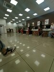 Отличное расположение, для тех кто живет за городом и имеет автомобиль. Находится в огромном ТЦ. Большая парковка, чистое помещение. Всегда работают кондиционеры. Проходимость большая, но очередь движется быстро, т.к. все время работают все окна. Вежливый персонал.