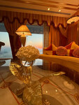 The tour will be interesting for those who want to personally see this legendary hotel from the inside. The tour starts in a building next to the Jumeirah Hotel. After presenting the ticket, a badge on a string is issued, which must be worn during the tour. You can also pay an additional fee there in advance.napiki and coffee with golden powder. We didn 't order . Then they are taken by car to the hotel itself. They are brought not at the front entrance, but to a separate entrance for excursions. They immediately pour rose water on their hands, give cold wet towels. A delicious drink is also served. The tour is in English, but everything is clear enough. Then they lead to the hall (where you can't take pictures). Then take the elevator with a transparent wall to the floor, where they first lead to the museum room, and then to the most luxurious room. You can take pictures there and there.