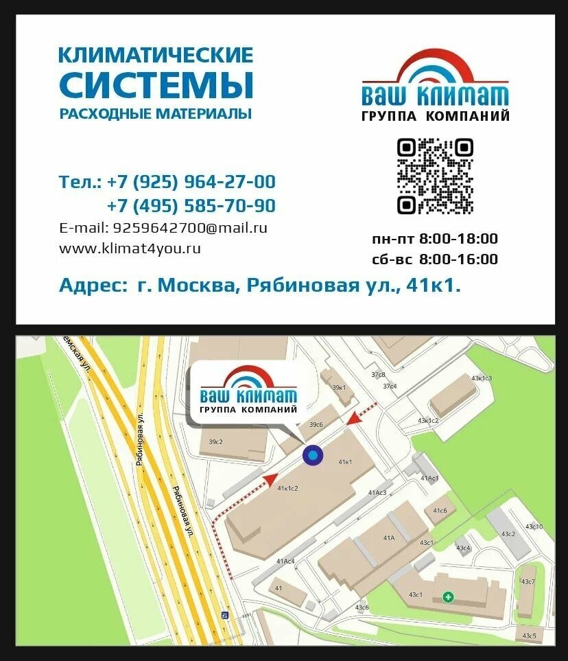 Хороший магазин с расходными материалами по кондиционированию, все необходимое есть в наличии и по приемлемым ценам, время работы если не ошибаюсь с 9:00 до 18:00, лучше смотреть на сайте и заранее звонить если время в притык к закрытию, могут дождаться