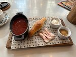 Зашёл я тут в одно местечко и сразу понял — это рай для тех, кто любит утонуть в мягких диванах! Их тут столько, что можно выбирать диван под настроение. Взгляд мой тут же упал на его величество Гигантский Чебурек. Сердце забилось чаще, я уже представлял нашу встречу… но увы, нас разлучила она — кинза! А где не было кинзы, там поджидали другие ингредиенты из моего личного стоп-листа. Наша с чебуреком история любви так и не началась. Трагедия! Но горевал я недолго, ведь на горизонте появился он — борщ! Подали его как VIP-персону: в личной мини-кастрюльке, да ещё и с эскортом в виде вкуснейшего пирожка. Порция, конечно, была скорее для фото, чем для оголодавшего путника, но зато какая насыщенная и вкусная! Облепиховый чай был что надо — согрел и душу, и тело. А потом… потом были они! Пончики-шарики! Это просто маленькие сферы чистого гастрономического счастья, тающие во рту. Зачёт! Хинкали оказались неплохими, а вот с вином мы, к сожалению, характерами не сошлись. Итог таков: место симпатичное, с диванами — просто песня, и есть настоящие хиты вроде борща и пончиков. Но лично для меня меню оказалось полем с кулинарными минами (привет, кинза!), да и кошелёк слегка напрягся. Так что, хоть мы и славно посидели, во второй раз я, пожалуй, не вернусь. Но за пончики — отдельное спасибо!