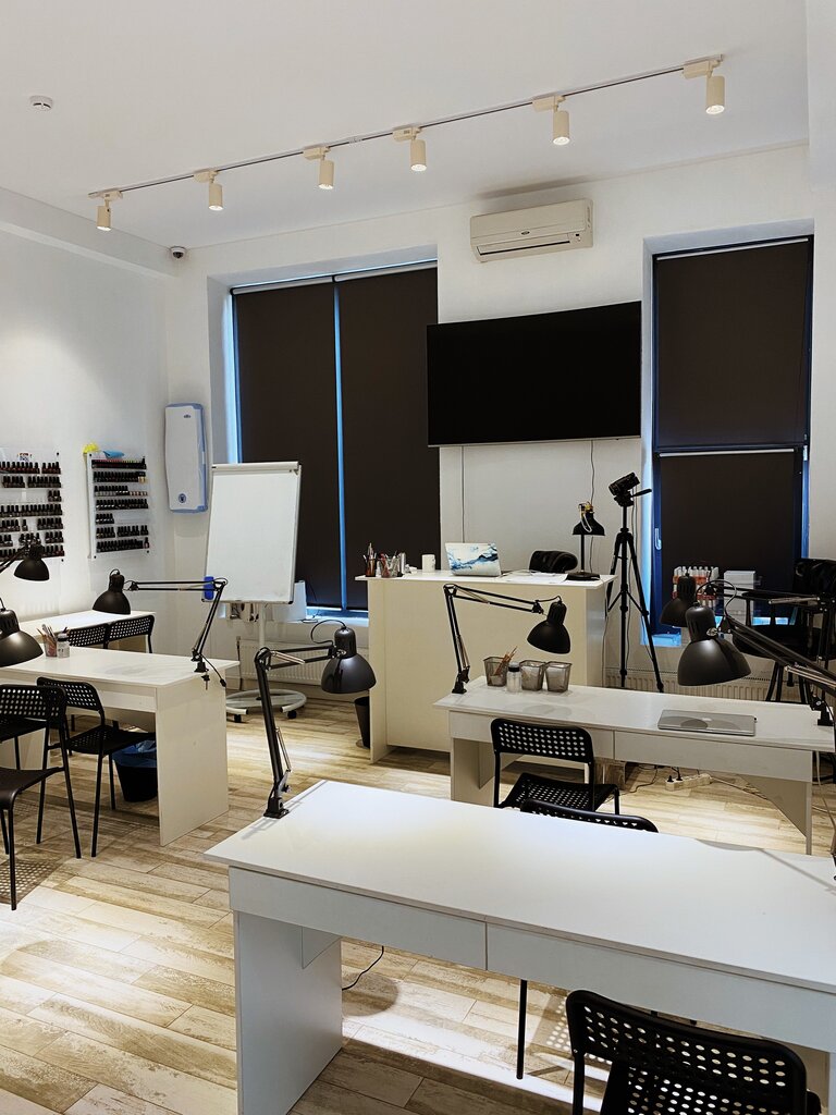 Обучалась больше 1,5 года назад. Студия для обучения красивая, работники школы приятные, вежливые . Обучение с утра, так что из далека лучше не ездить, я все дни опаздывала ). Рассказали много, вполе достаточно . Знаю что покупать, как выбирать и где, материалы, оборудование . Конечно не все возможные варианты, но объяснили что точно "нет" и почему. Первый день с 10:00 теория, потом первый маник на своей руке. Второй день теория, потом маник на руке модели. Третий день тоже самое . Два ученика на одну модель . Выпускной, диплом, сертификат красивый большой и че то еще было, совместное фото с преподавателем . Показали комби, пытались научить держать ножницы, но я уже с ними работала неправильно долго, потому не вышло, ахах. Выравнивание по коротким ногтям базой, с гелем мы не работали, только акрилом чинили. Покрытие гель лаком конечно . Добавили в группу единомышленников. Давали перерыв на покушать. Ходила в футкорд рядом. Лучше брать курсы больше, недели не 2