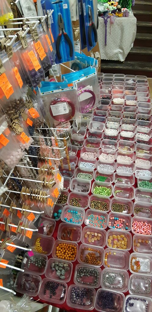 Handicraft stores:tapes, ornamentation, beads, yarn, lace, paper, cardboard, packing, tools, dyes, findings
