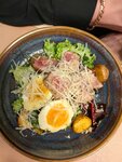 Хрустящий салат с кусочками обжаренной курицы, сладкими помидорами черри и пикантным соусом. Нежный пармезан и пряные анчоусы гармонично дополняют вкусовую палитру, а перепелиные яйца придают блюду сытность. Идеальный выбор для легкого обеда или ужин