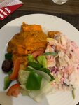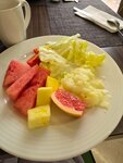 The hotel is nice. Breakfast is probably like everywhere else: pancakes, porridges, omelets, eggs, sausages, and so on. The dinner is great: lamb, beef, fish, seafood, and so on and so forth. Salads are plentiful, fruits are plentiful, and so are pastries. In general, you will not stay hungry. There are not many dishes, well, not Turkey, but they are all very tasty and of high quality. It's close to the sea. In general, I recommend it.