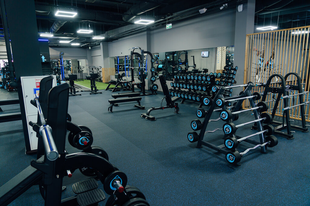Зал красивый, современный, но не очень хорошо оборудован тренажёрами. Мне кажется, это больше именно фитнес зал, а не зал для занятий большим спортом, всего две скамьи для жима, и то любительские, без регулировок высоты стоек, один стенд с гантелями более 10 кг, нет тренажёров для трицепсов и так далее, зато шкафчики в раздевалке с электронными замками и хамам есть