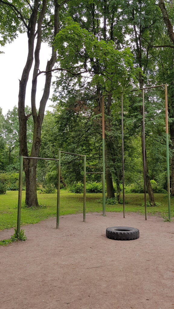 На этом оборудовании, скорее всего, занимались еще динозавры! 🦖 Аналогов по городу практически не найти. Да, турники старые, погнутые и отполированные многими поколениями пользователей, но это лишь придаёт этому месту атмосферности и напоминает о богатырях прошлого. Высокие турники, столбы для подьема (аналоги канатов), около 5 метров в высоту, брусья.