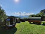 Какой восторг мы испытали, когда утром из окон увидели горы (мы приехали по темноте) ! Потрясающее зрелище! Территория ухожена, цветы, газон, бассейн, качели. Даже для детей песочница. Кухня, душ и туалет общие. Все опрятно, чисто и уютно. Есть все необходимое для приготовления и приема пищи. Домики в бочке - это прям изюминка, да еще и с подсветкой! Особая романтика. Было немного холодно, но мы включали обогреватель и помещение быстро нагревалось. Так что все в порядке. Хозяева гостеприимные, вежливые, заботливые. В каждой мелочи чувствуется забота. Мы довольны