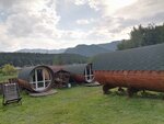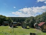 отдыхали здесь в июне 2023, очень необычно! Большие бочки , в которых стоит огромная кровать, стул и столик, на территории есть все удобства и даже баня, так же в виде кедровой бочки. Бассейн, батут, беседки, мангалы и конечно, просто супер вид на горы, отличное место, нам понравилось!