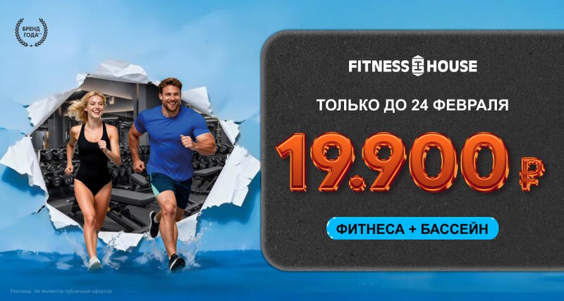 Скидки до 60% на фитнес+бассейн в Фитнес Хаус. Только с 21 по 24 февраля! Развивайте силу и выносливость с удовольствием в клубах Фитнес Ха...
