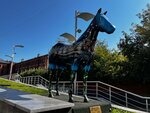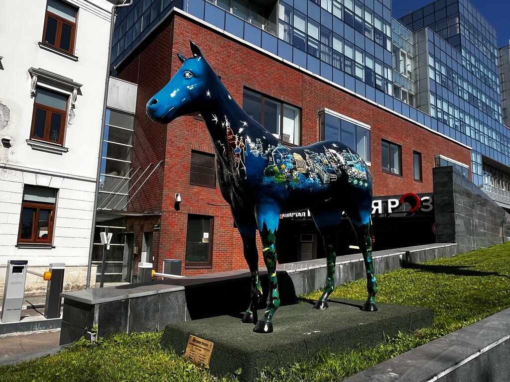 Знаковое место рядом с главным офисом Яндекса! Две скульптуры лошади с очень оригинальным окрасом и креативными одеждами! В прочем это понятно! Передовая компания России! Молодой коллектив! Креатив!) Надеюсь не изменят свой имидж после смены правил игры….