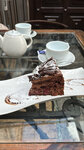 Very tasty desserts! We took the Raskosha cake, a chocolate sponge cake with cherries and nuts, and chocolate petals. I don't like chocolate cakes, but this one was delicious. We were sitting on the veranda, a quiet corner in the very center.