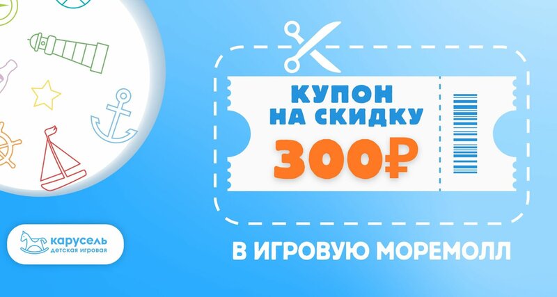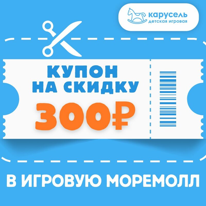 Акция в детской игровой Карусель МореМолл! Покажите скриншот купона администратору на кассе и получите скидку на любой входной билет! Подробности на сайте