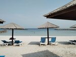 The beautiful beach of the Coral Beach Sharjah Hotel. Lots of deck chairs, soft sand, gentle entrance to the sea. The swimming area is well protected by a reliable breakwater.