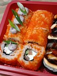 1. Тунец в темпуре (тунец, томат, сыр сливочный, соус спайси, кляр, сухари панировочные панко, рис, нори). 2. Эби в темпуре (креветки тигровые, томат, сыр сливочный, соус спайси, кляр, сухари панировочные панко, рис, нори). 3. Митто в темпуре (кра...