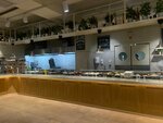Еда всегда на уровне хорошем, если учесть, что это кафе столовая. Широкое разнообразие блюд и выбора. Внутри всегда уютно, светло и чисто. Люблю за большие панорамные окна. На столах также всегда чисто. Особенно нравится торт красный бархат, который мы периодически заказываем на развес.