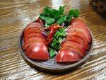 Кинза, укроп, зеленый лук, свежие помидоры, телятина, капуста айсберг, лимонный сок, заправляется оливковым маслом