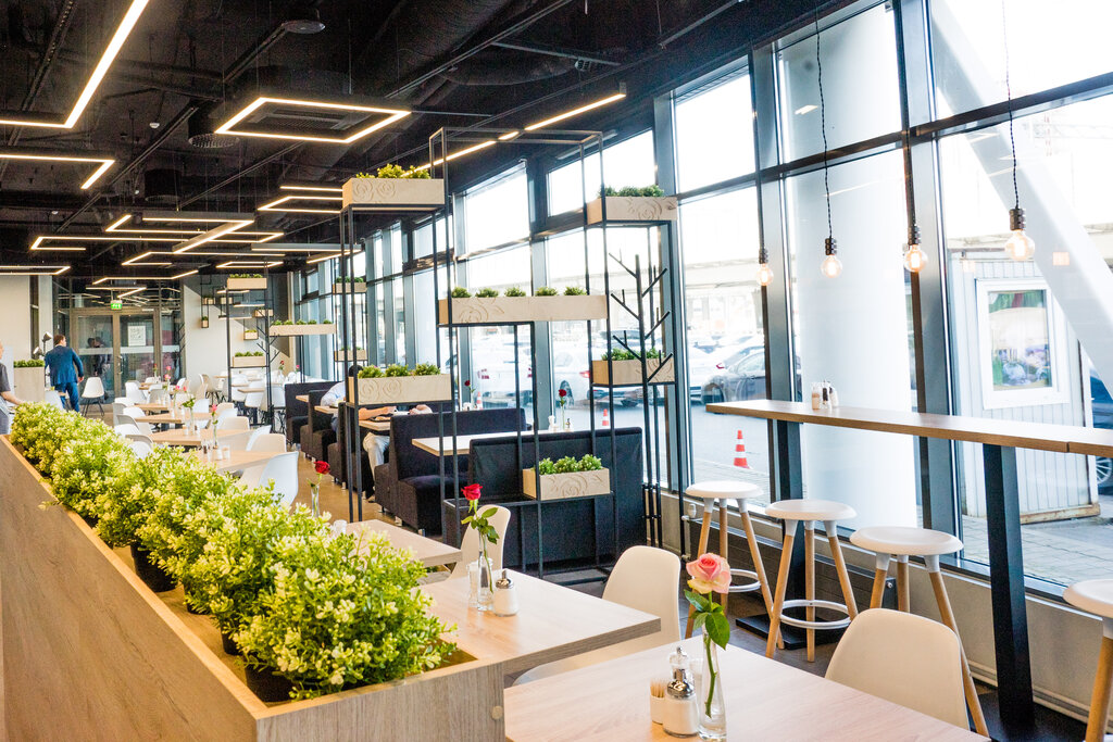 Это одно из немногих заведений, где можно пообедать качественной и привычной для всех кухней, наслаждаясь приятной джазовой музыкой, уютом и атмосферой панорамных окон. Чистыми столами и приятным интерьером, где нет ощущения, что это проходное место. Нет лишних деталей, которые бы засоряли визуальное восприятие этого места.