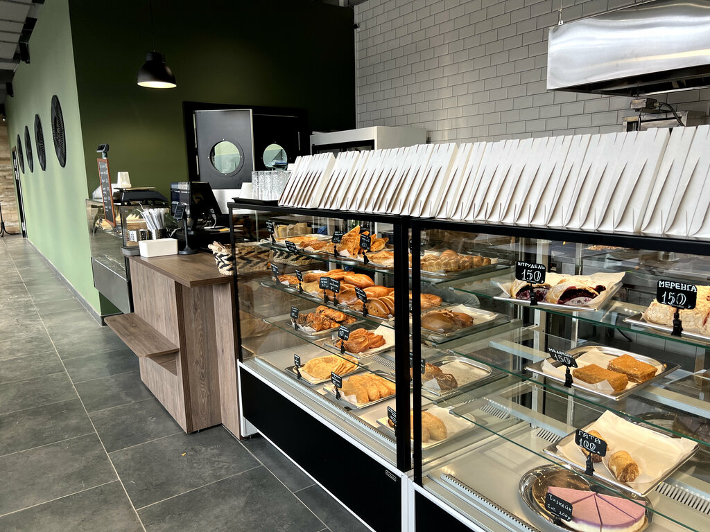 Потрясающее заведение, несмотря на внешнюю простоту. Пройдёшь мимо не заметишь, но советую всем зайти! Плюсы: - Действительно качественная выпечка (и скидки после 9 вечера!!!), очень вкусно, особенно осетинские пироги, едим всей семьёй. - Неожиданно очень качественные десерты, ничем не хуже вкусвилловских да и в целом ресторанный уровень. Особенно меренговый рулет, те же торты попроще. - Персонал вежливый, отзывчивый, всегда рады, предупреждают на что есть вечерние скидки, на что нет. - Есть вполне себе сидячие места комфортные, как в обычном кафе, можно посидеть попить кофе(Я лично не пробовал, но стабильно вижу людей сидящих и наслаждающихся) - Удобно расположено, если вы на машине(есть парковка), если идёте от тайнинской прямая дорога до тц, удобно. Есть также готовые салаты, обеды, мясо и прочее, но я не пробовал. Люди берут, видимо подходит. Всем советую.