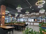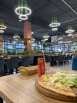 Ресторан просто утопает в зелени, пусть и искусственной, под потолком сверкают огнями елочки, много мягких зон, диваны удобные, не хочешь на диванах, садись в мягкие кресла, выбор есть, что немаловажно. Официанта ждать не нужно, подходит сразу. Меню достойное, дети голодными не останутся. Заказали суп с фрикадельками и лапшой, пиццу Маргарита, нагитсы с картофель фри, апельсиновый сок и чай клюква апельсин. Суп как дома, нарезка овощей идеальная, единственное не хватило щепотки зелени для антуража. Пиццу привёз робот доставщик, эффектно, горячая, моцарелла тянется и тянется, тесто тонкое, но вот помидоры лучше брать поспелее. Чай клюква апельсин бодрит от кислоты, от сахара отказались, детям сказали пейте, там много витаминов, тоже зашло. Ресторан рекомендую, семейный поход и в будни, и в выходные зайдёт на ура