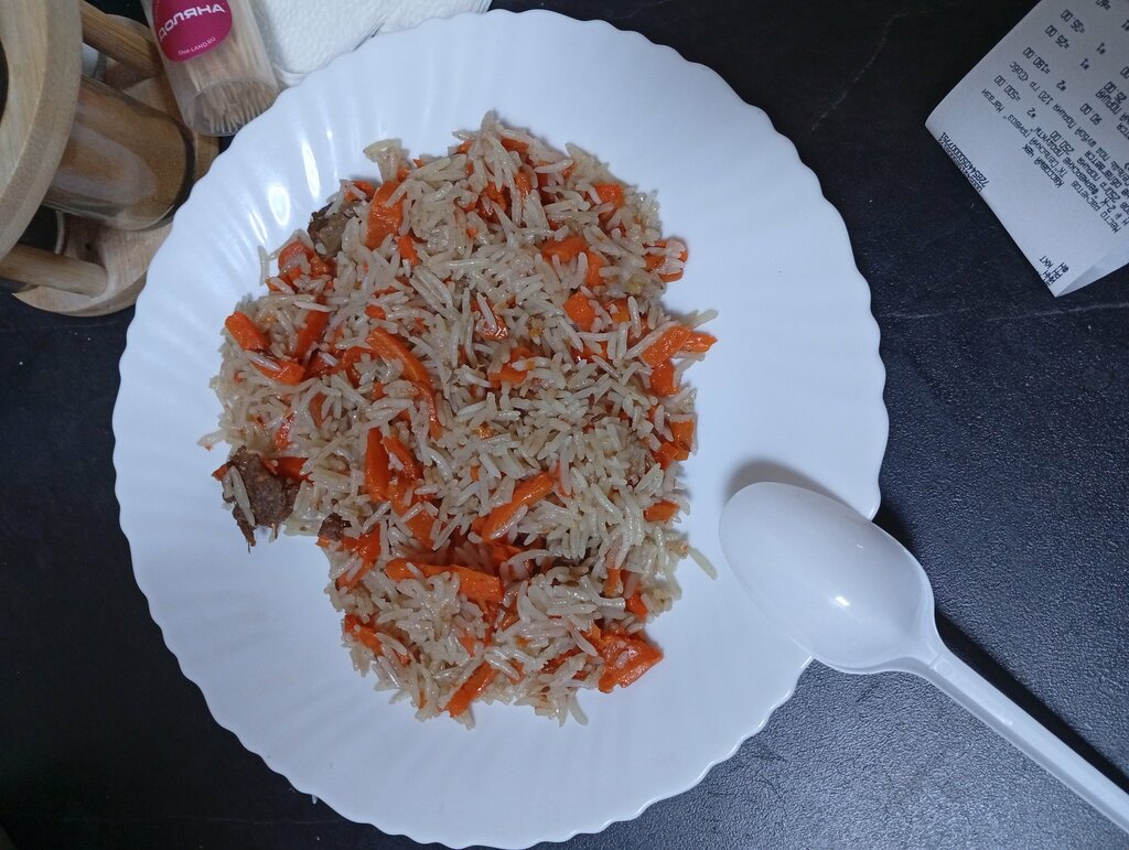 Были по делам, решили заскочить попробовать "плов". 250 р за порцию с пластмассовой ложкой, ни какого намека на свежие овощи и мясо, видимо забыли. Справедливости ради, девушка кассир без эмоций на лице предложила " Ну если вам надо, добавим"